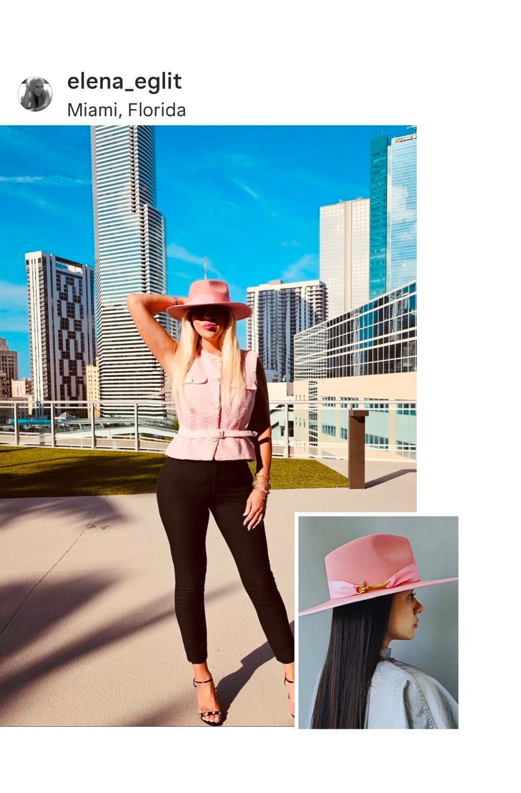 Wool Fedora Signature Collection.Elena Eglit looks effortlessly chic in our Pink Wool Fedora